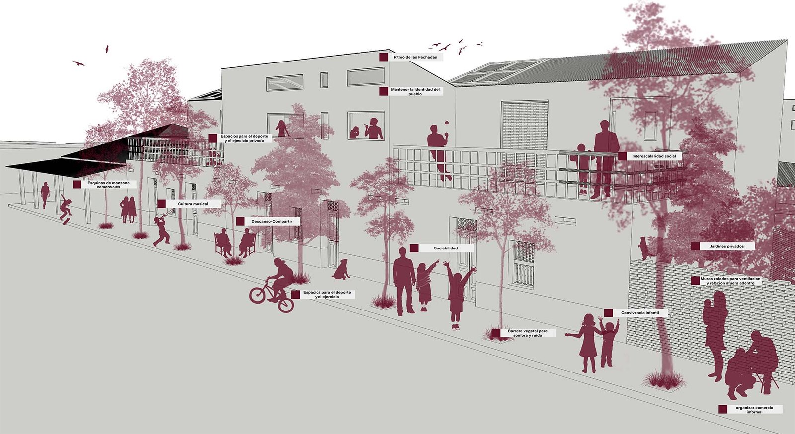 Las problemáticas del lugar: Pobreza multidimensional, viviendas deterioradas y envejecidos, falta de confort térmico, ocasionalmente falta de servicios públicos, déficit de equipamientos educativos y falta de señal de internet y telefonía.